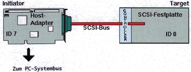 In der SCSI-Welt wird jede Kommunikation durch ein bestimmtes Gerät eingeleitet und durch ein anderes beantwortet. Dasjenige Gerät, das die Kommunikation beginnt, wird "Initiator" genannt. Im Allgemeinen ist es der Host-Adapter, der als Initiator fungiert, während die SCSI-Peripheriegeräte Targets sind. Unter bestimmten Umständen ist es zwar möglich, daß beide ihre Rollen vertauschen, aber normalerweise wird das Peripheriegerät die Kommunikation beantworten, das "Target" darstellen.